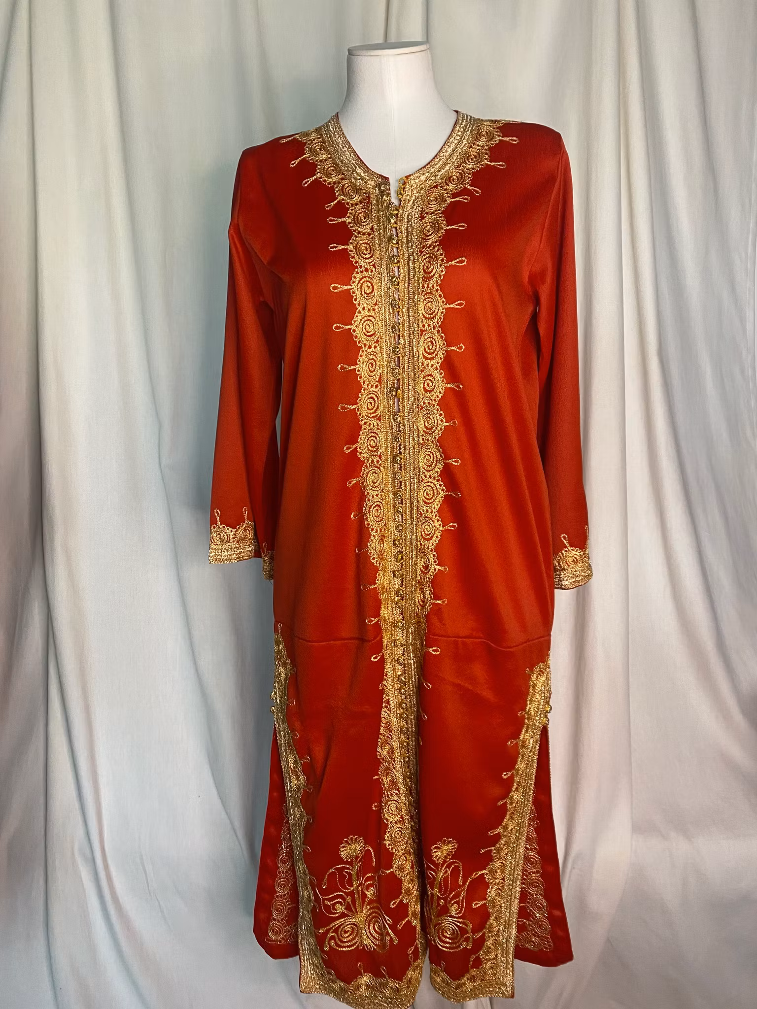 Vintage klänning 70-talet, guld broderier, guld knappar på framsidan av klänningen, rak i modellen fin sick