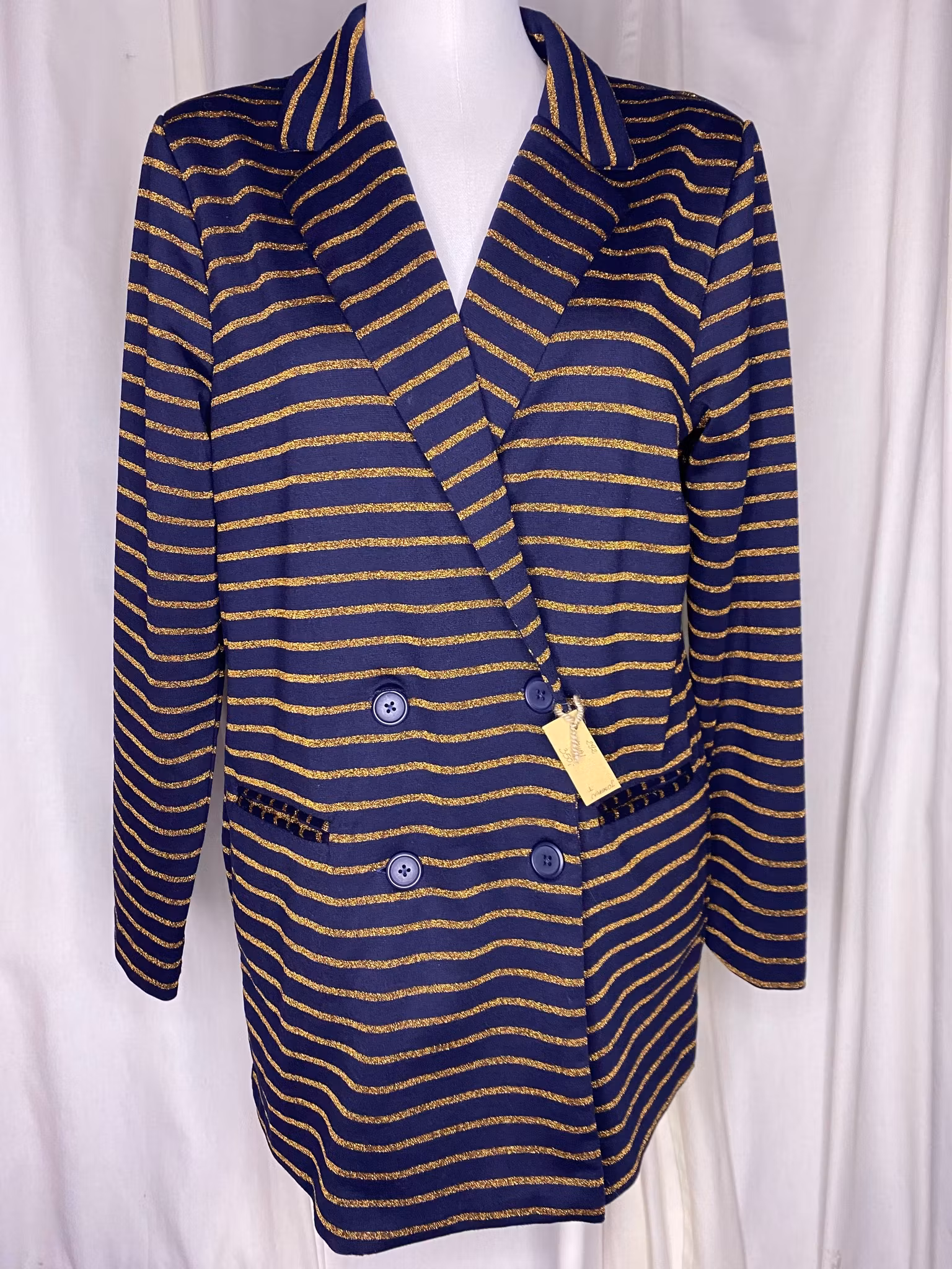 Mörkblå kavaj med metalliskt garn, dubbel knäppt, fickor