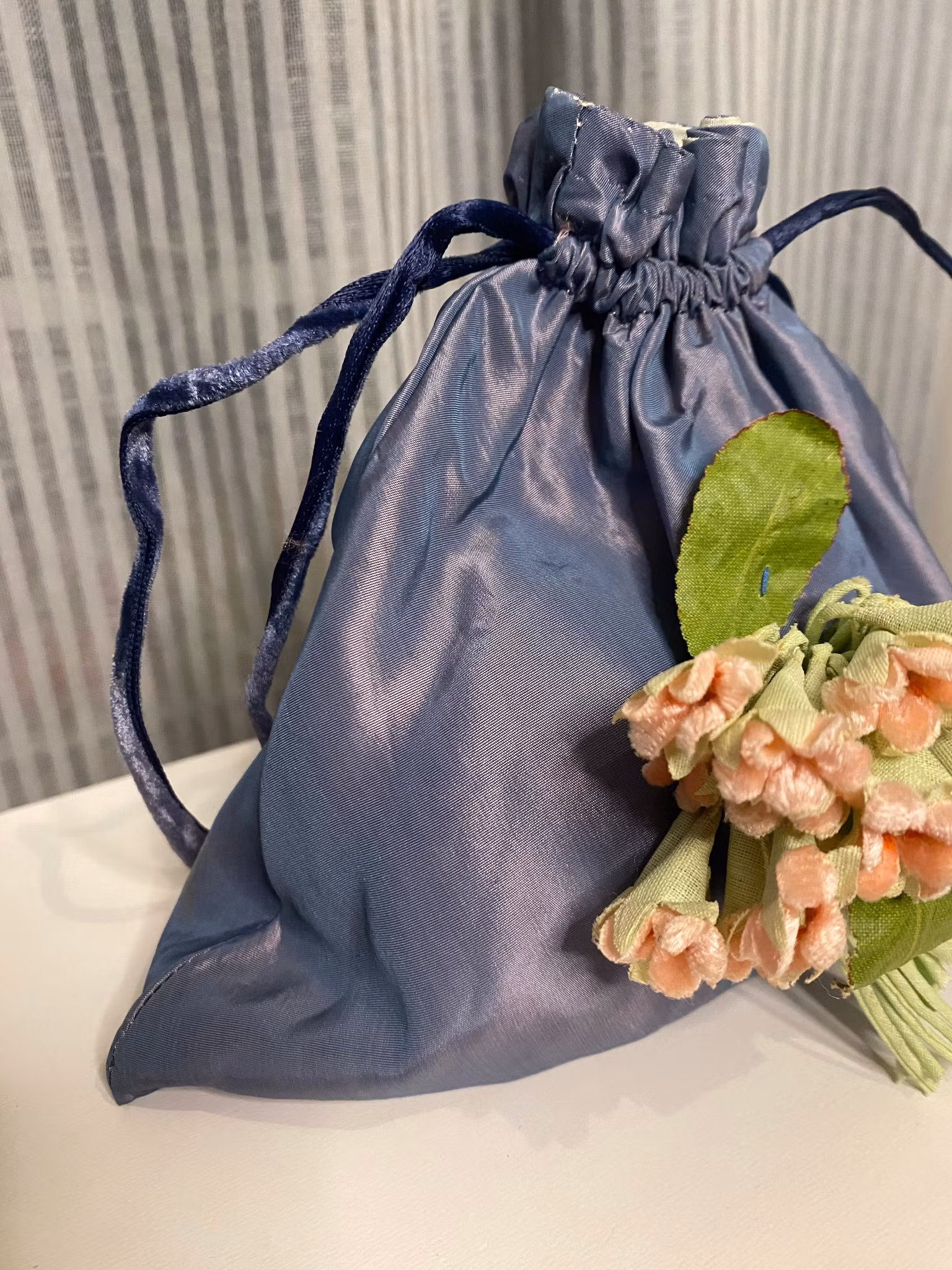 Väska 18*18 med påsydda fusk blommor