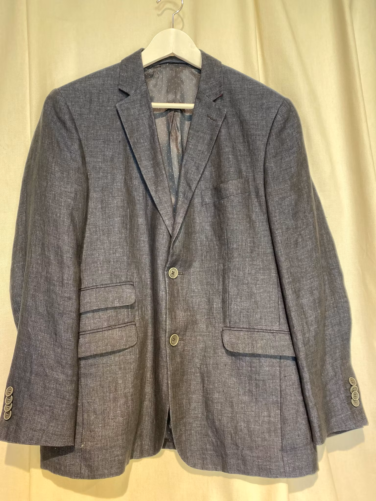 Marinblå linne kavaj, fodrat , fin skick , storlek C48