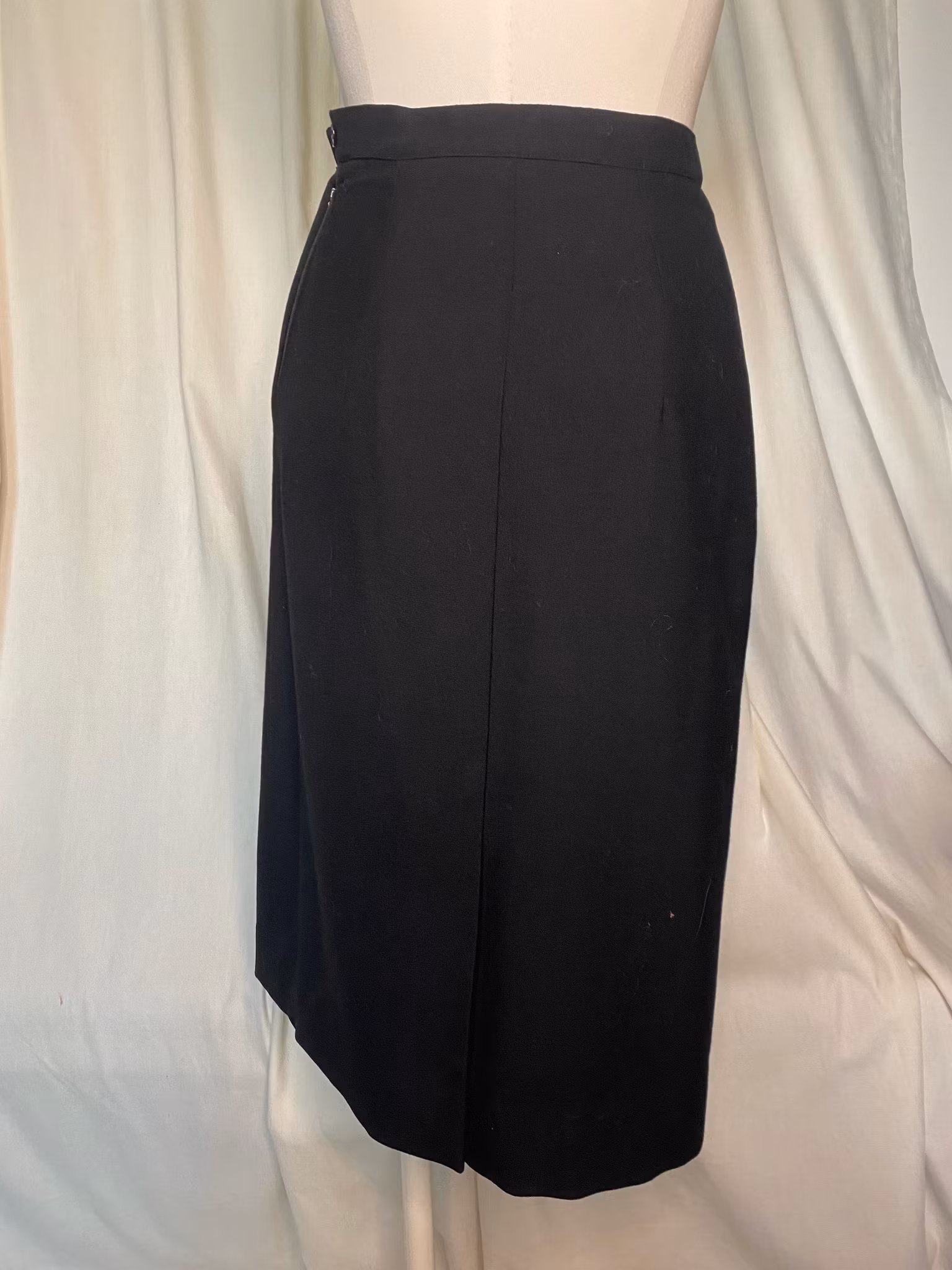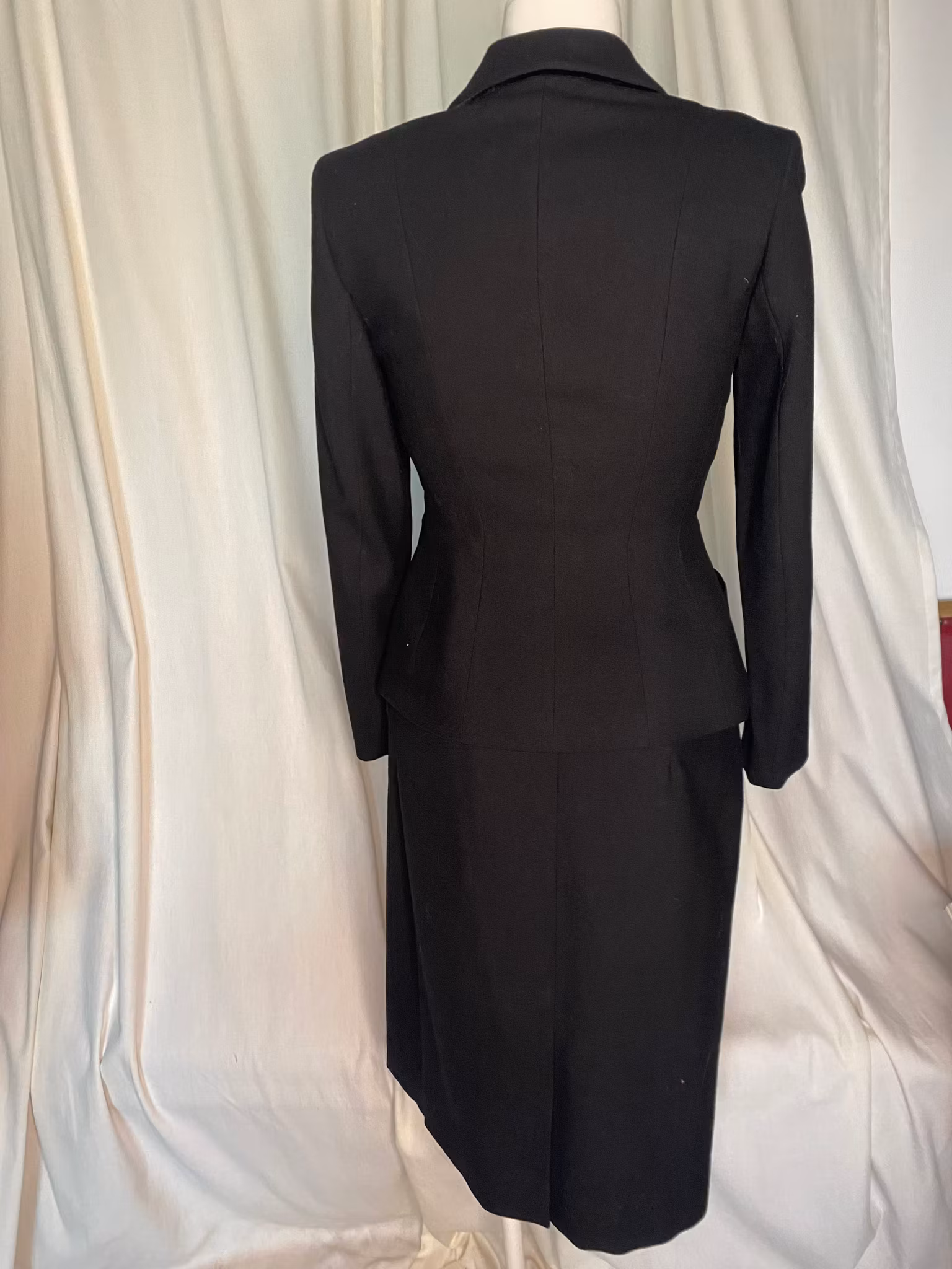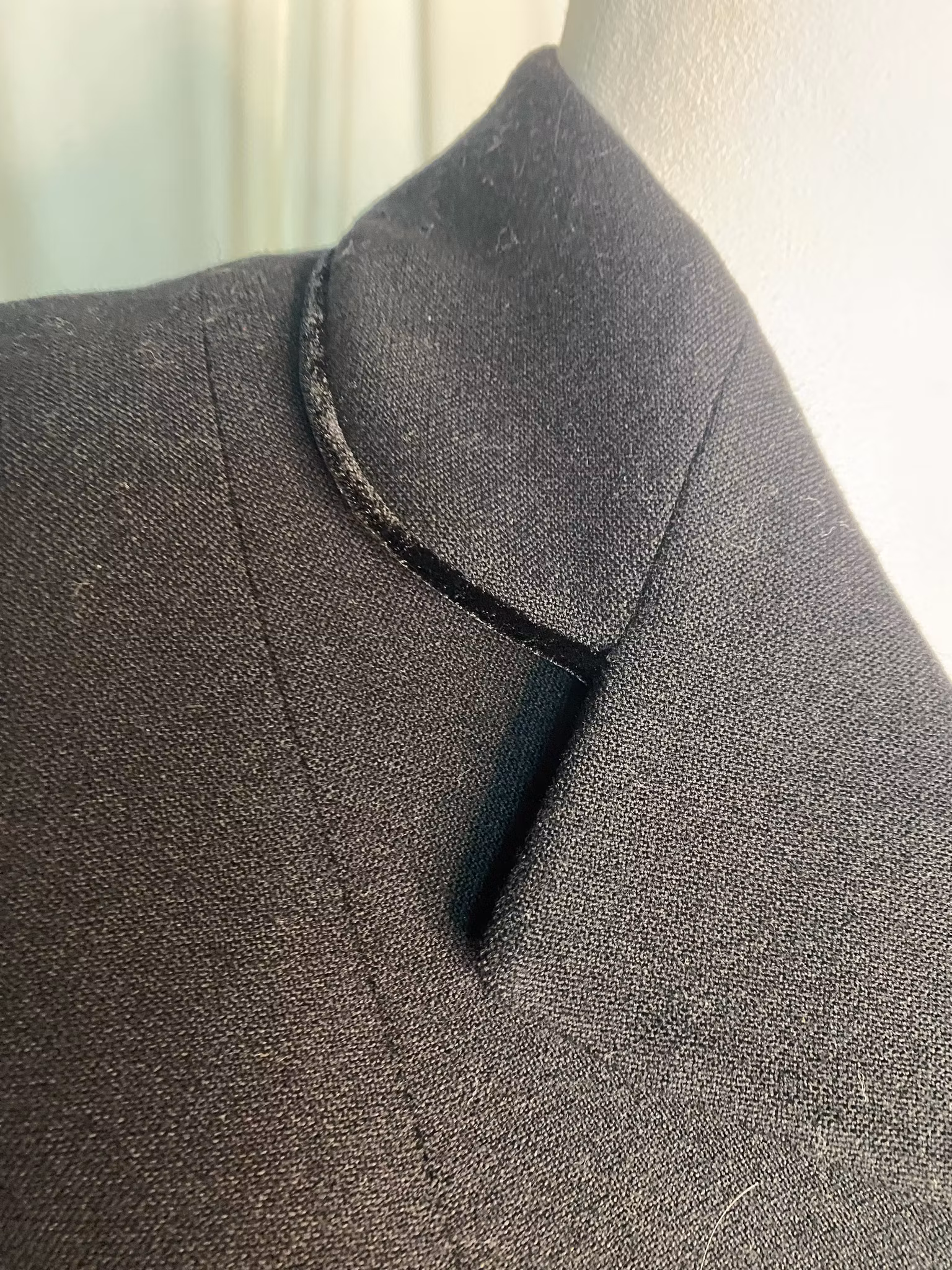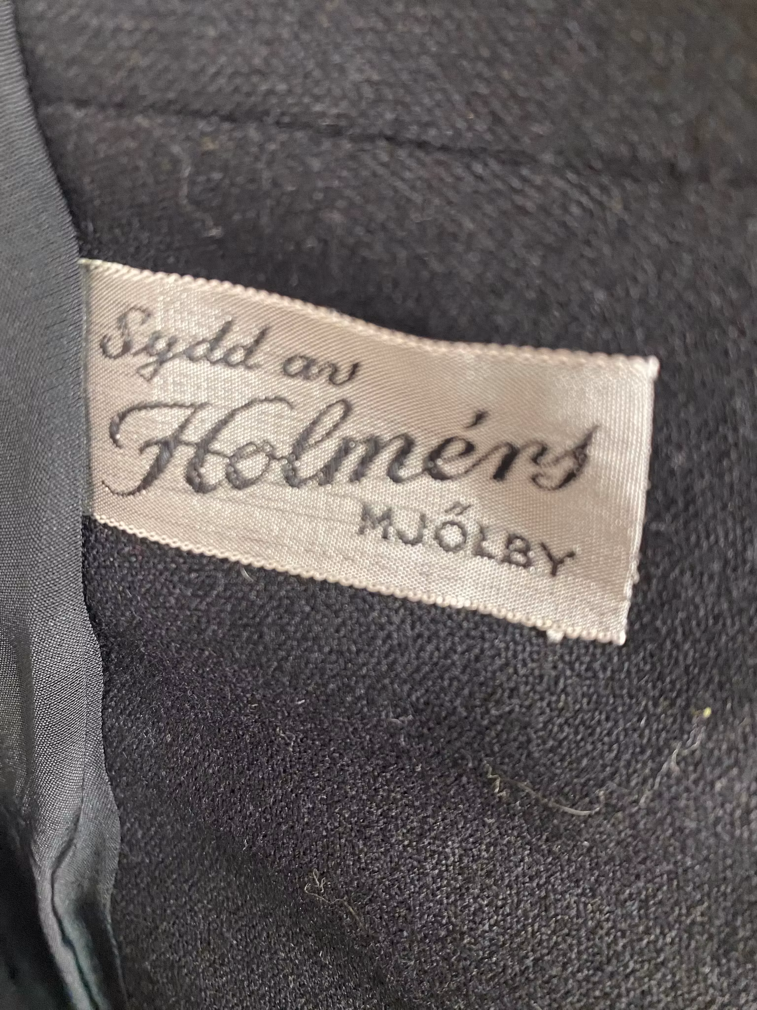 50-tals dräkt i ull med detaljer i sammet, dekorativa knappar, fin sick och kvalité