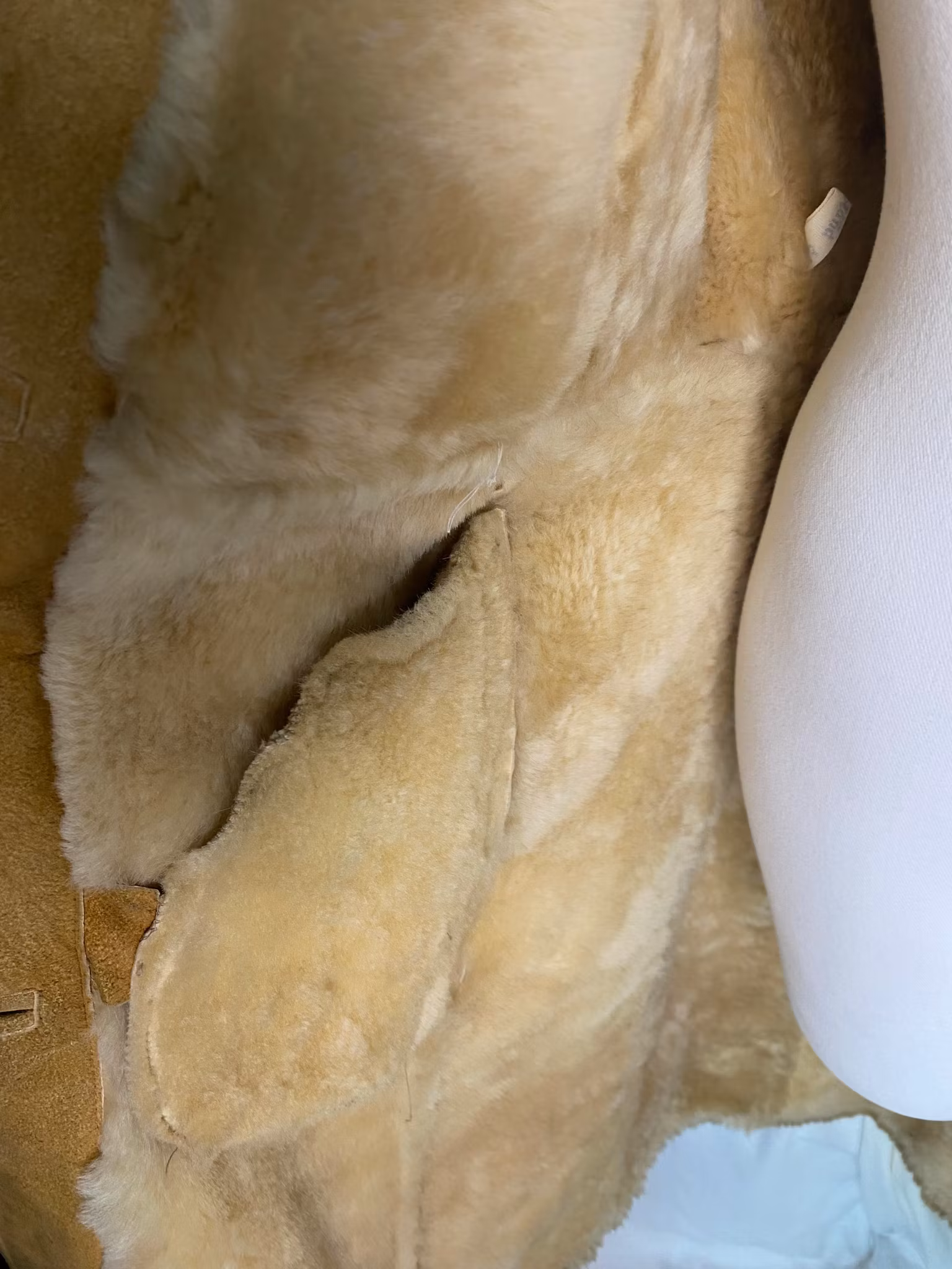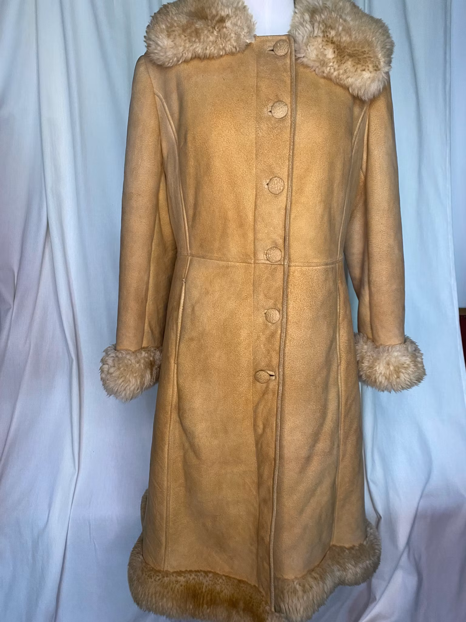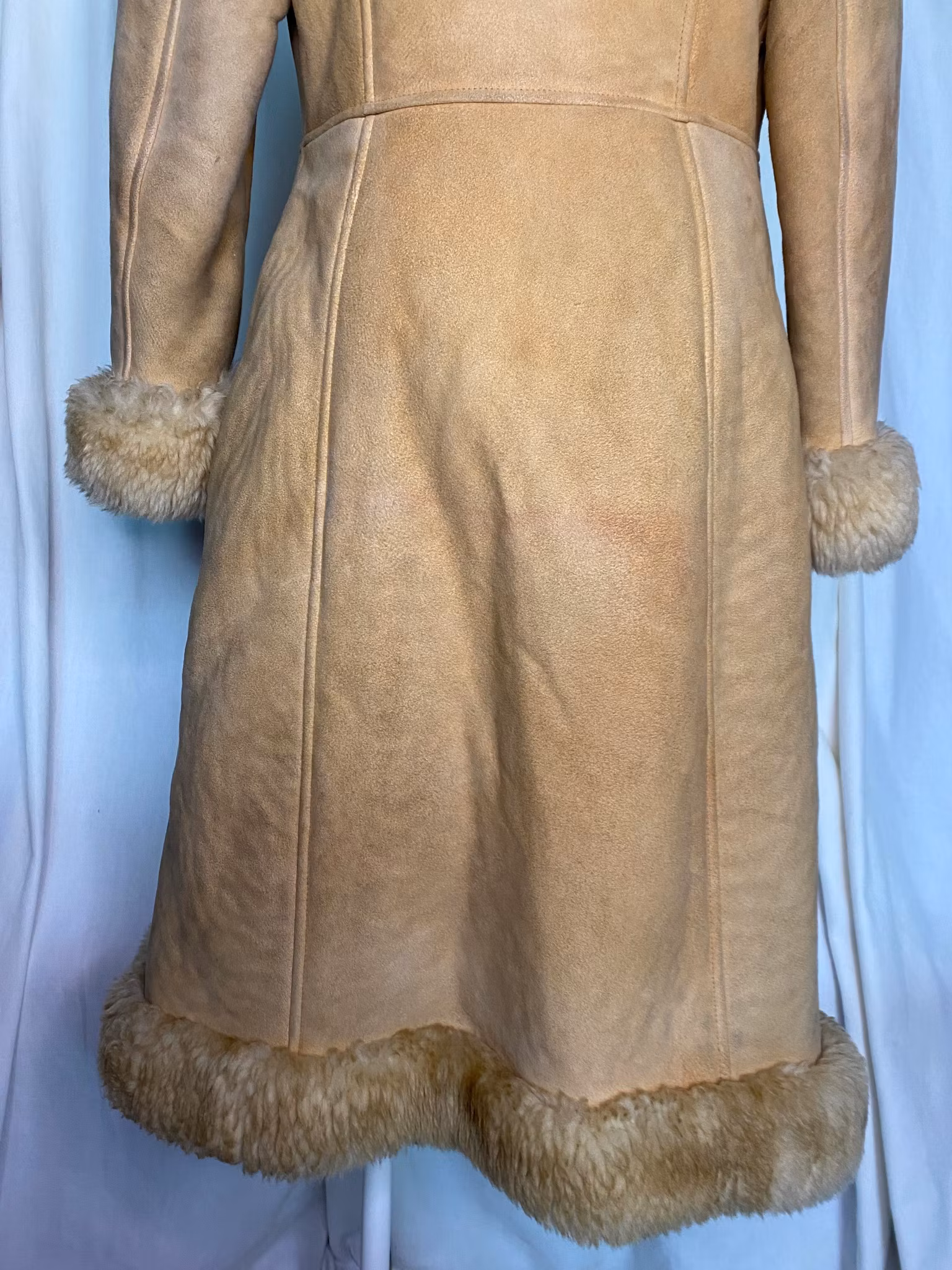 Vintage fårskinnkappa från 70-talet, markerat midja, fina detaljer, fin sick och kvalité ( liten slitage i mockadelar)