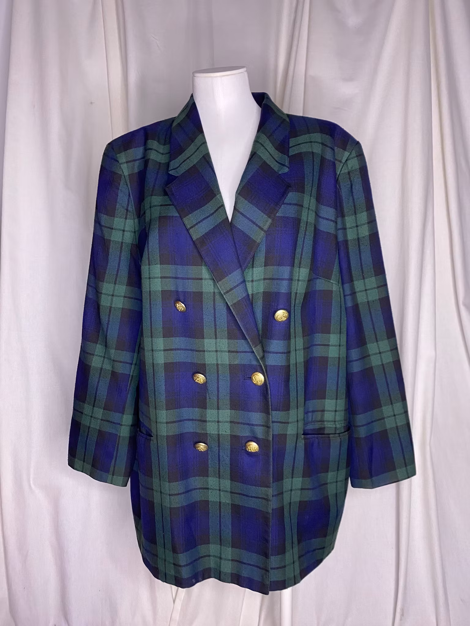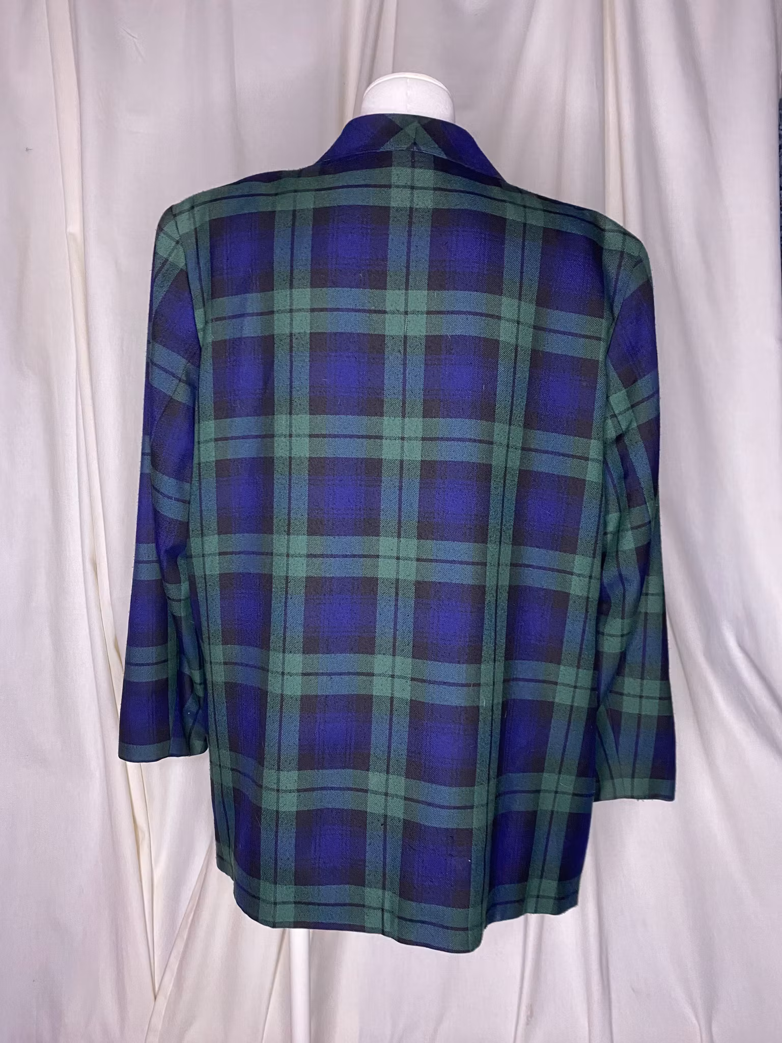 Blå/grön rutig kavaj från J. Leopold, dekorativa knappar, fickor, rak i modellen, lite nopprig