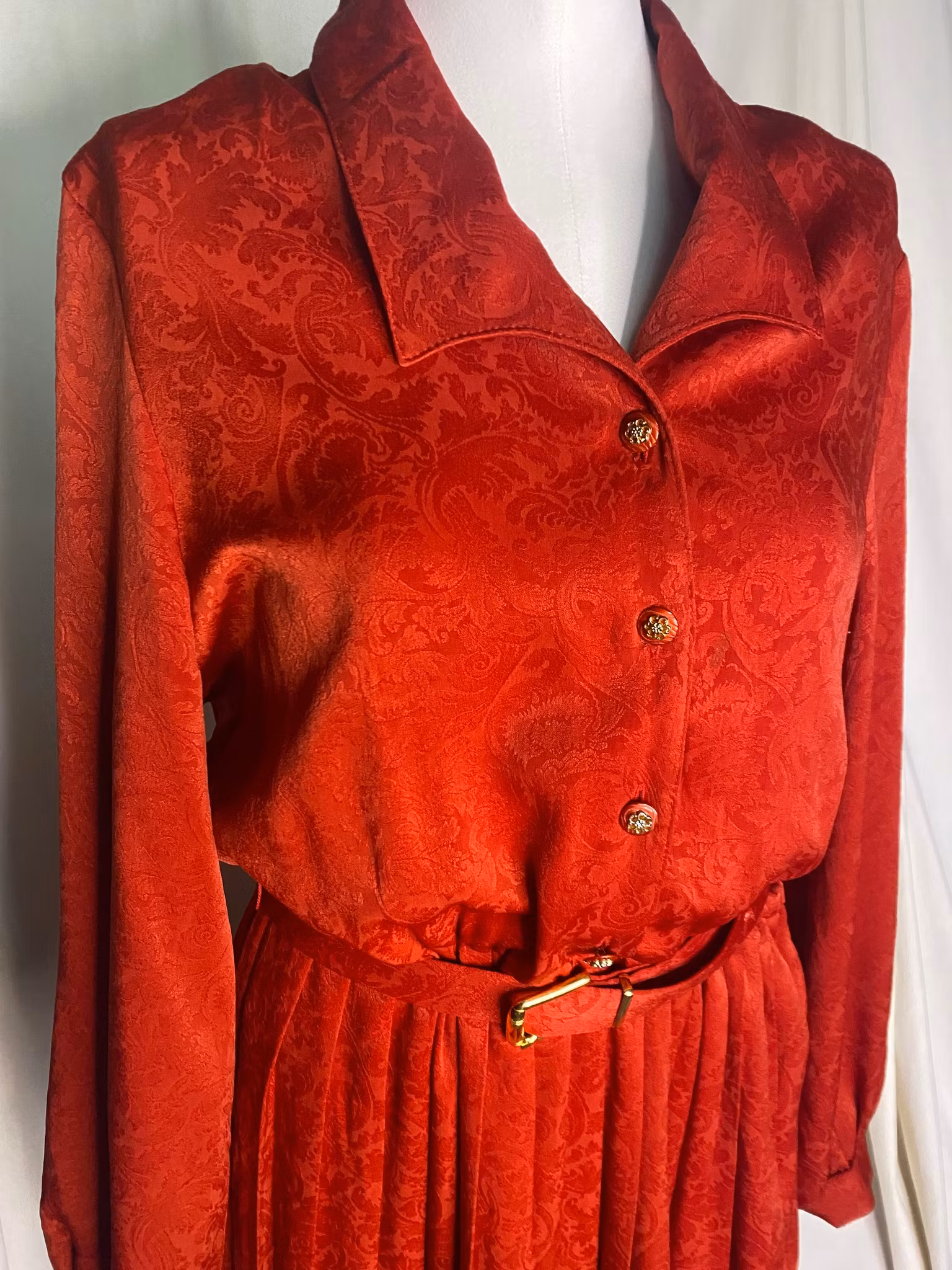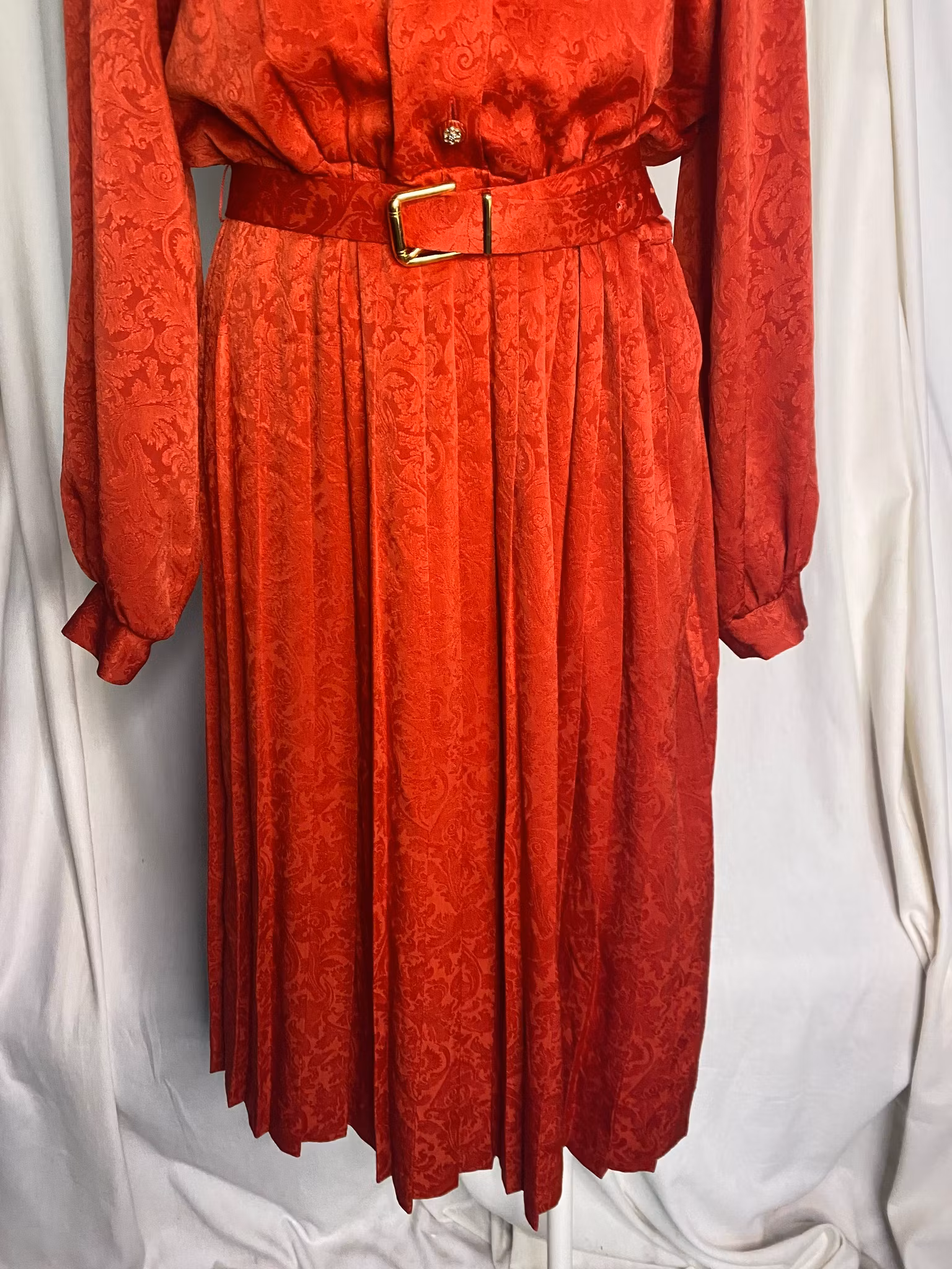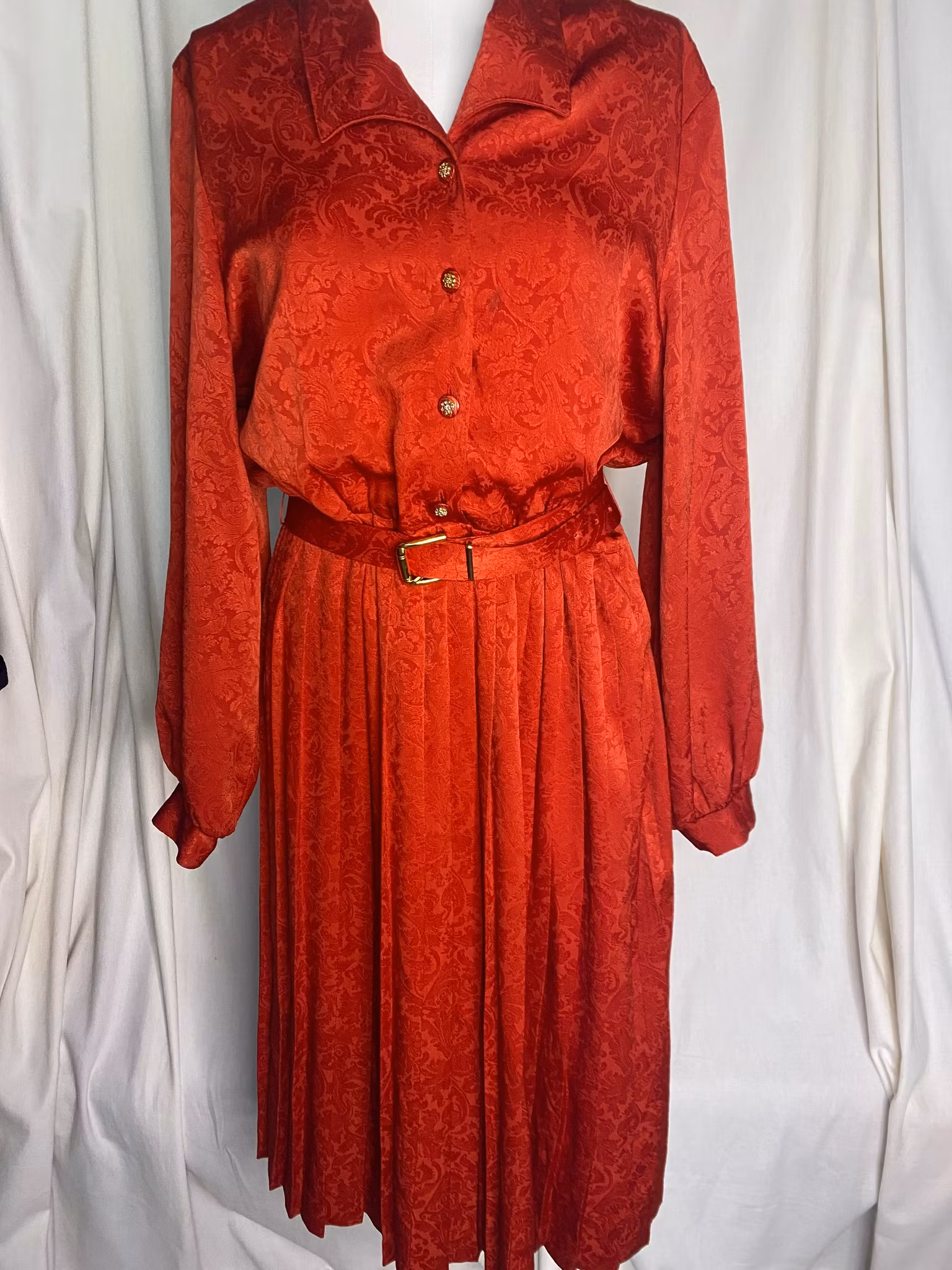 Vintage klänning med plisserad kjol, resår i midjan, skärp, fina detaljer som små knappar, fin sick