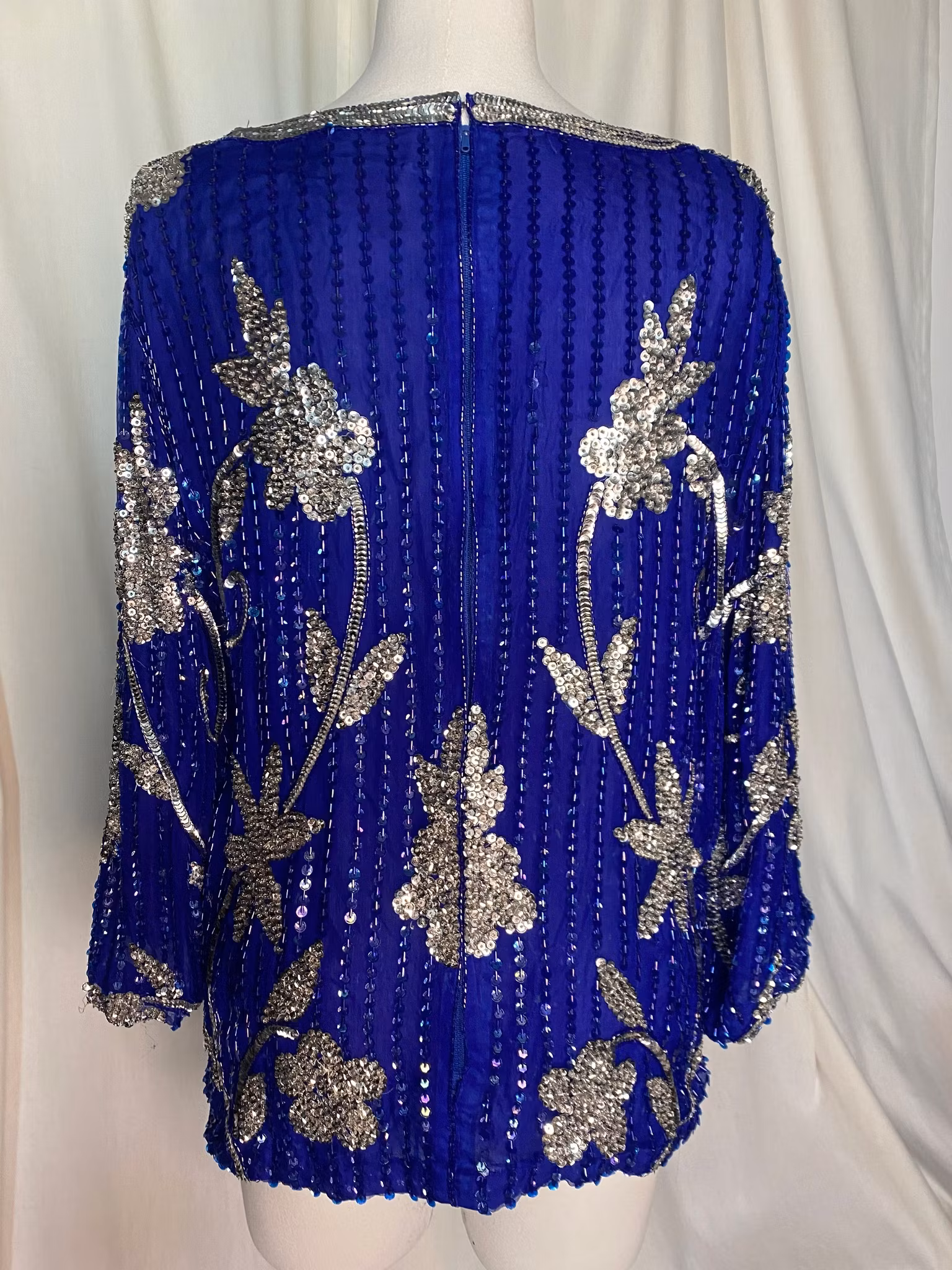 Vintage topp i siden med paljetter, dragkedja i ryggen, fin sick och kvalité